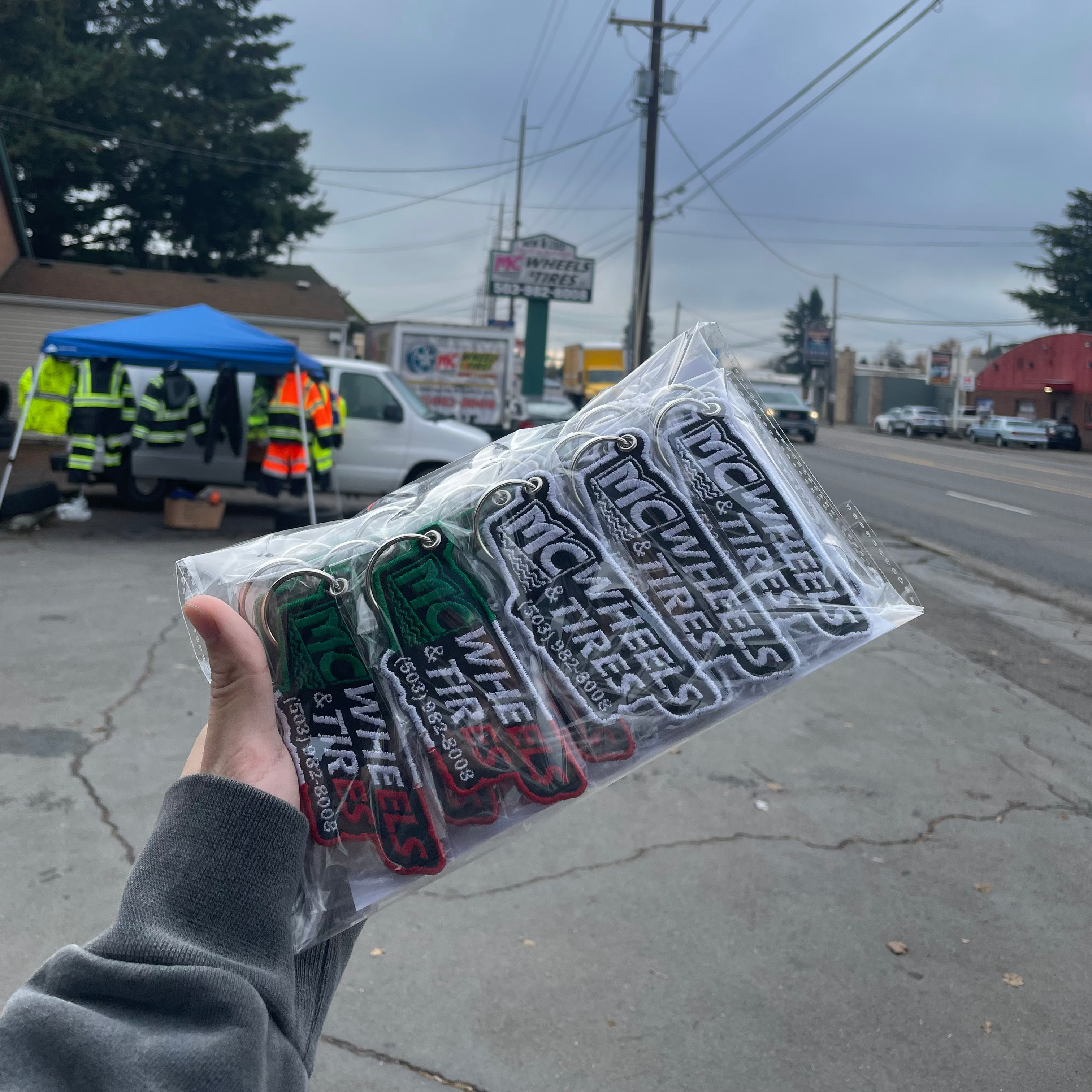 Embroidered keychain made with duck canvas fabric. Perfect to promote your business at a low cost