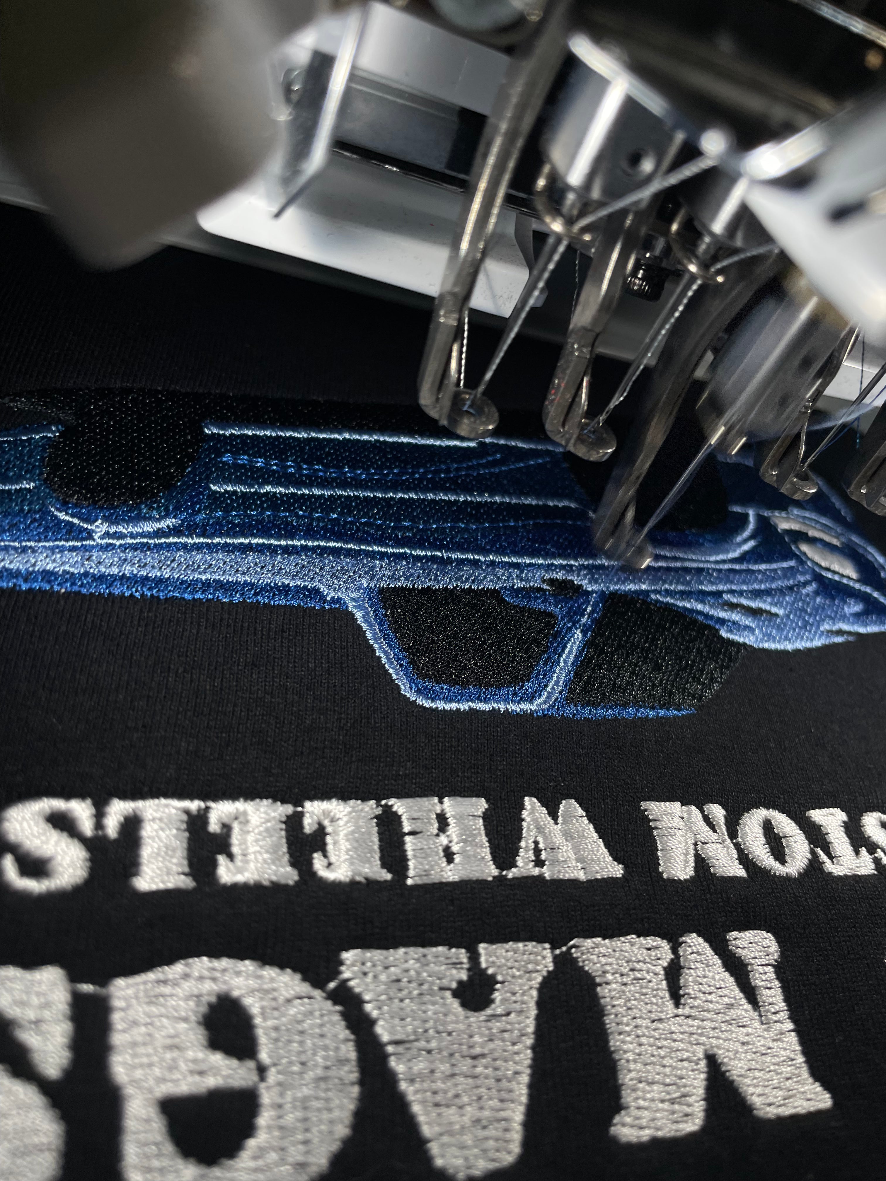 Embroidery - Thread that's stitched onto the garment, making it have contrast and a feel to it. Produces a more luxury/higher quality type of product