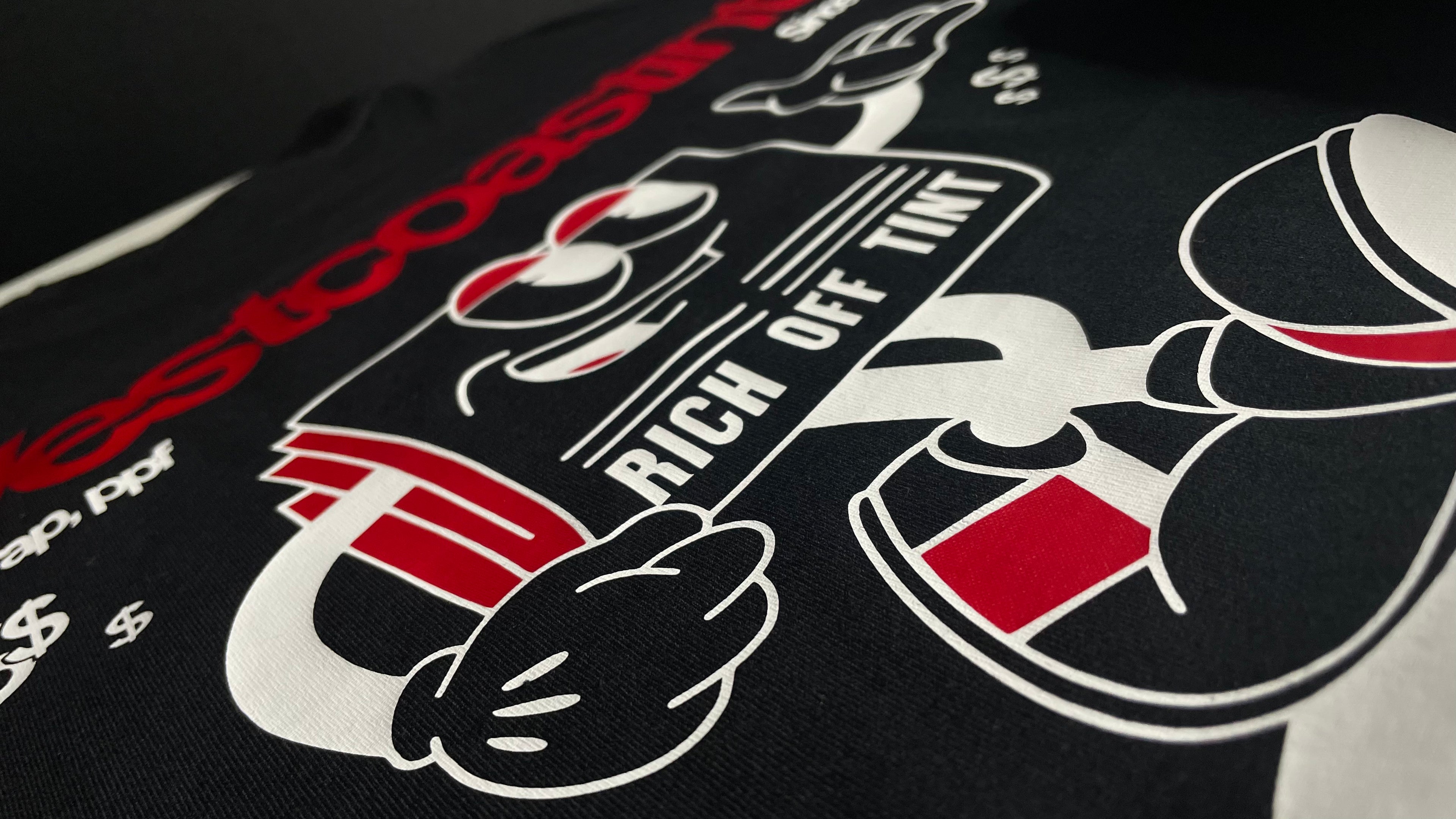 Embroidery - Thread that's stitched onto the garment, making it have contrast and a feel to it. Produces a more luxury/higher quality type of product